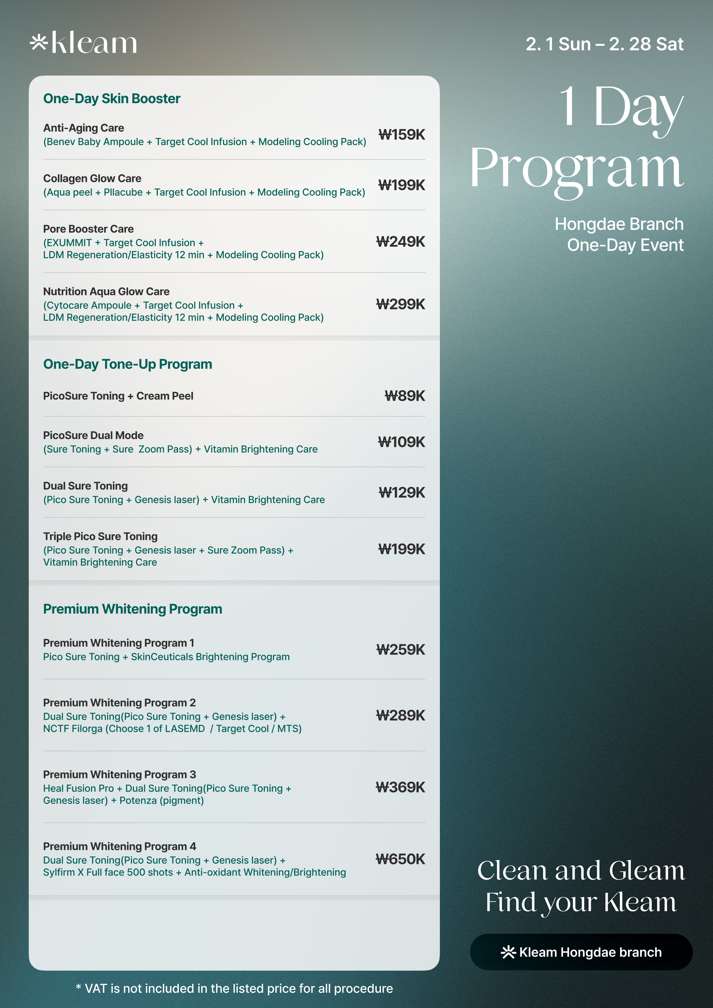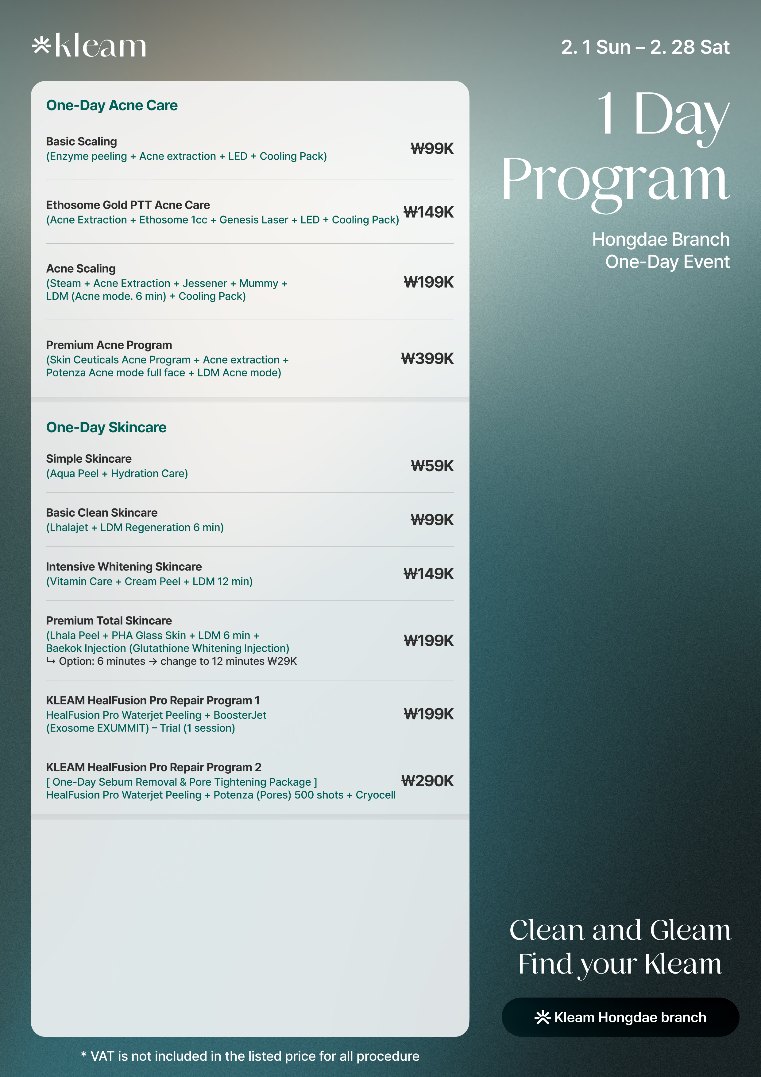 *There will be additional charge of VAT(10%)*